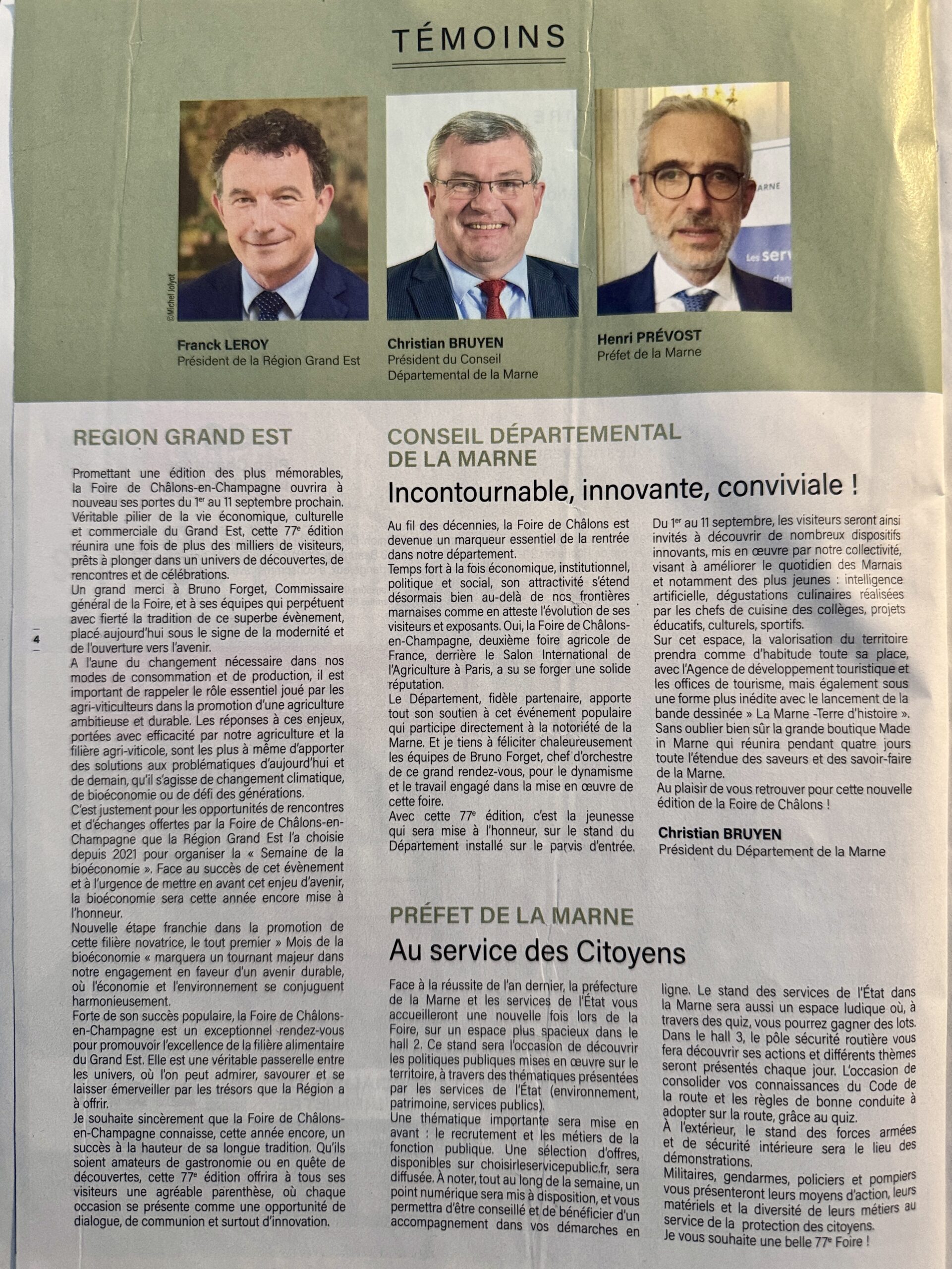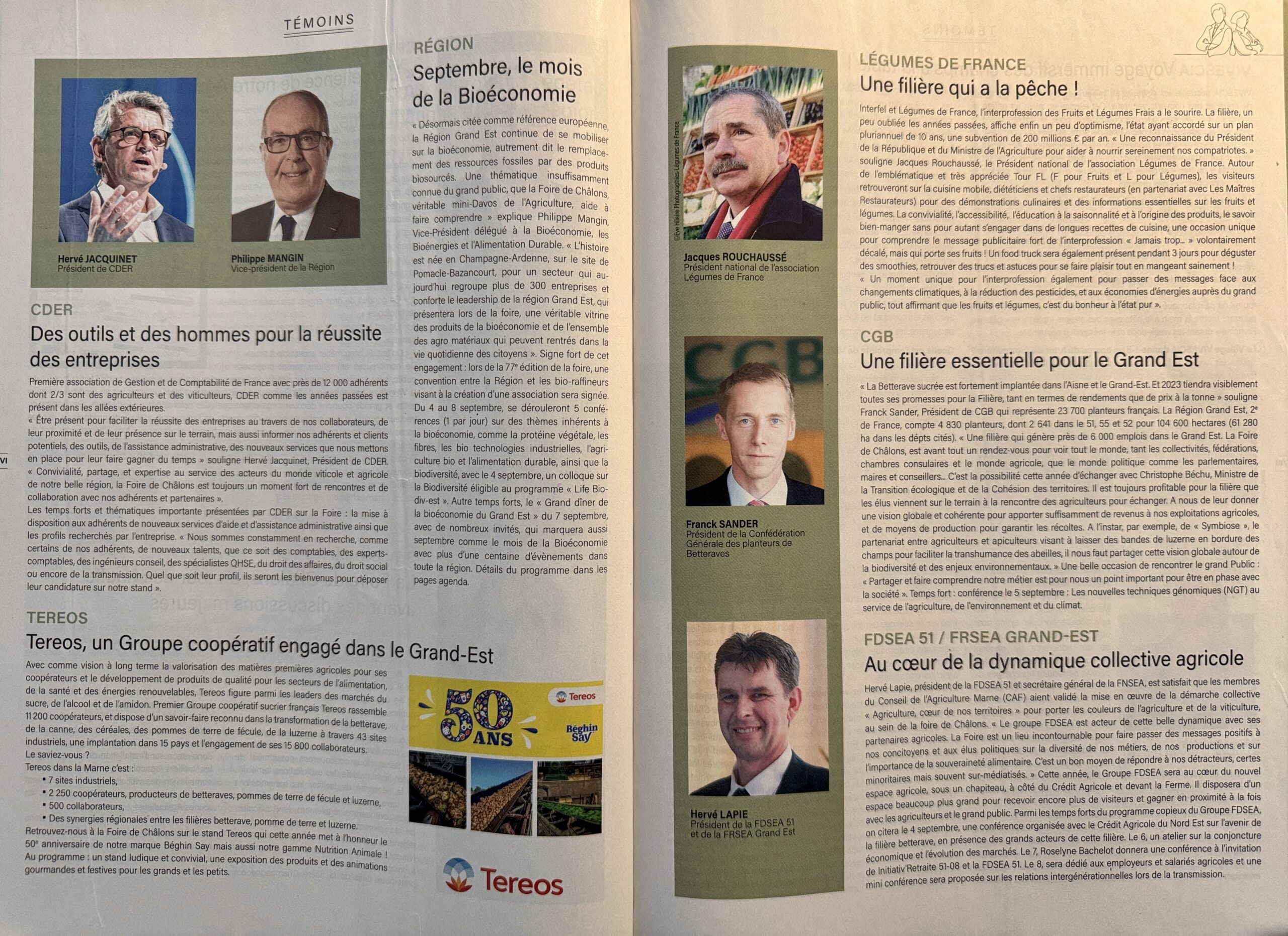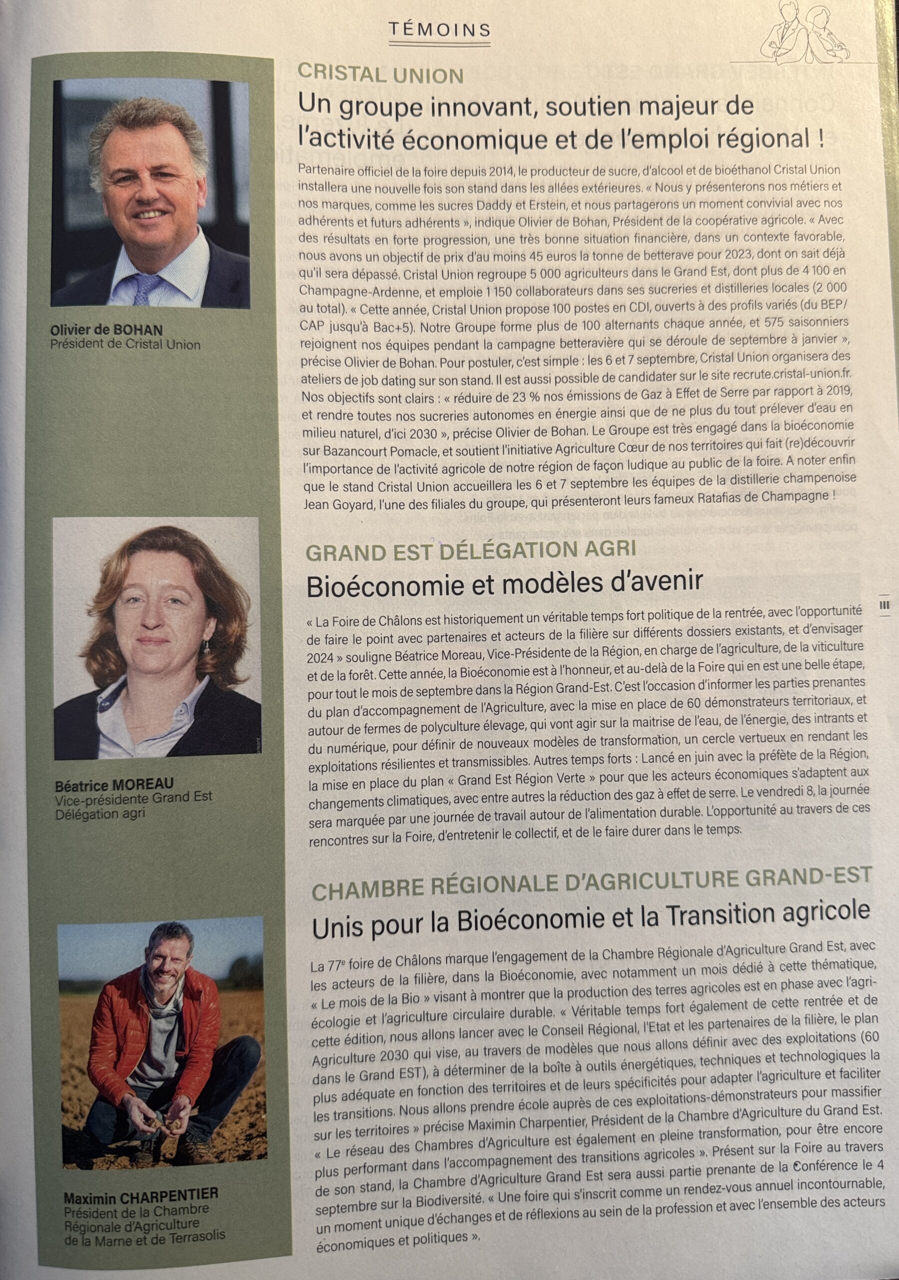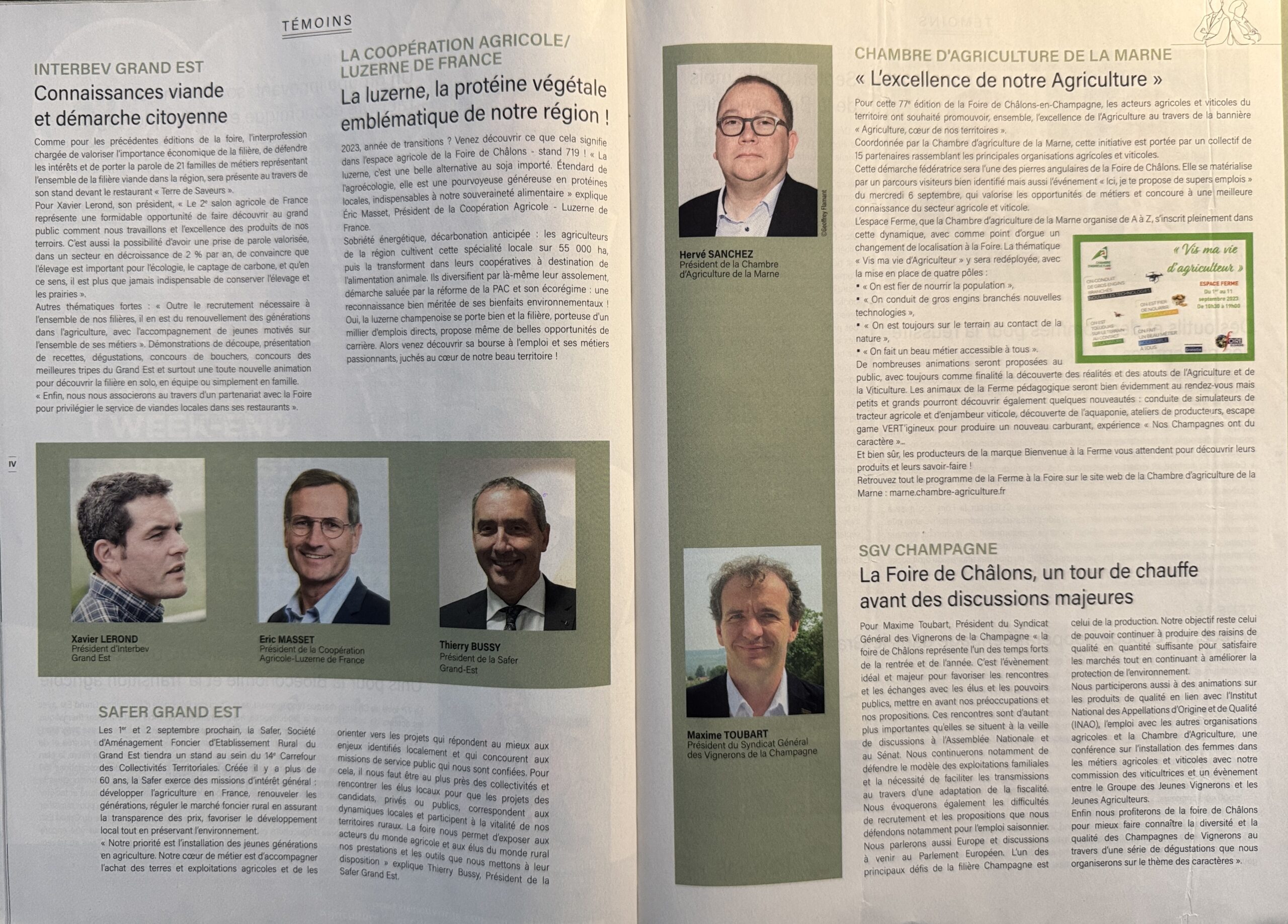 37 interviews (articles) pour le magazine de la Foire de Châlons, 2 ème foire agricole de France, distribué par le Journal L'Union, partenaire de l'évènement du 1er au 11 septembre 2023.