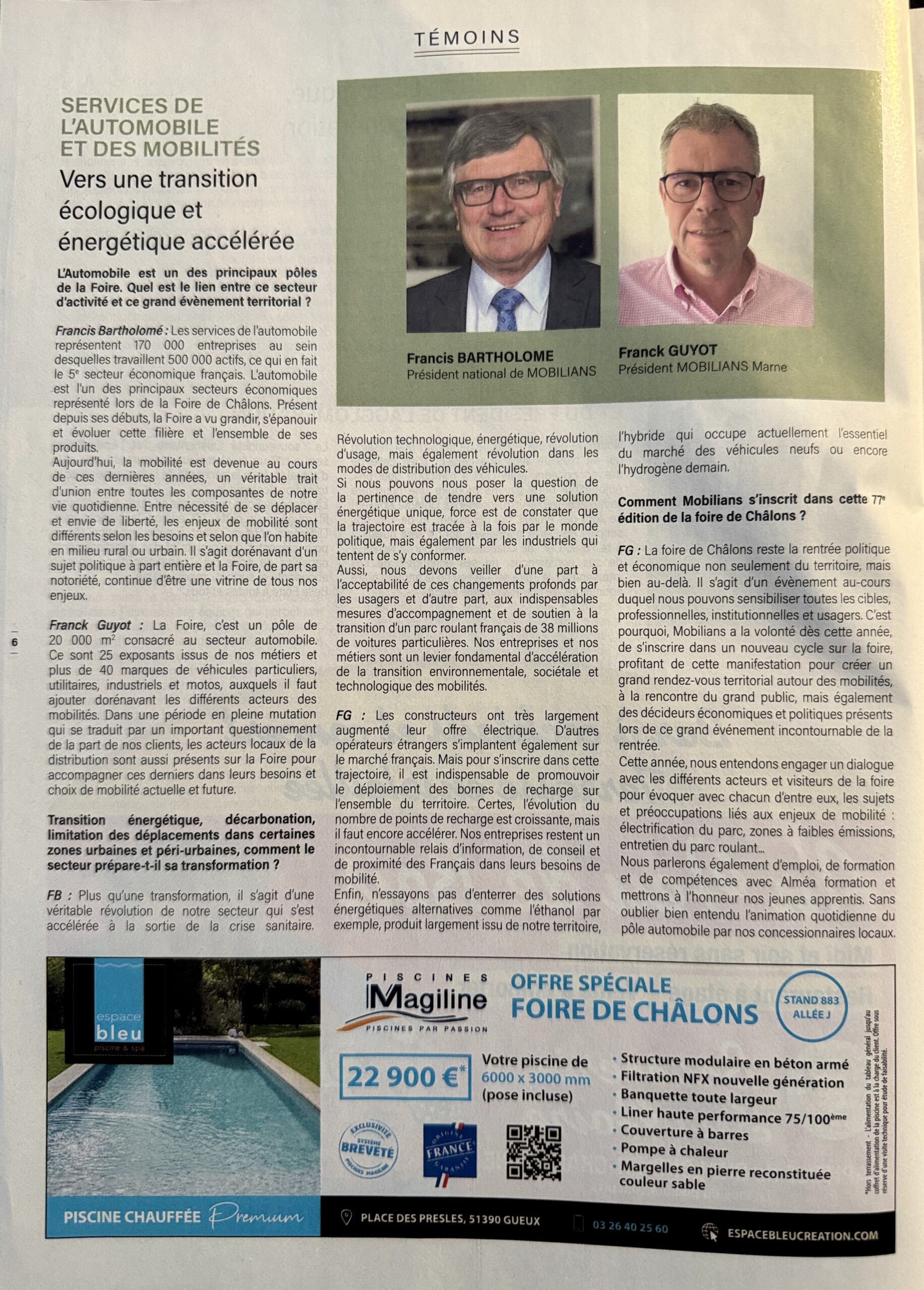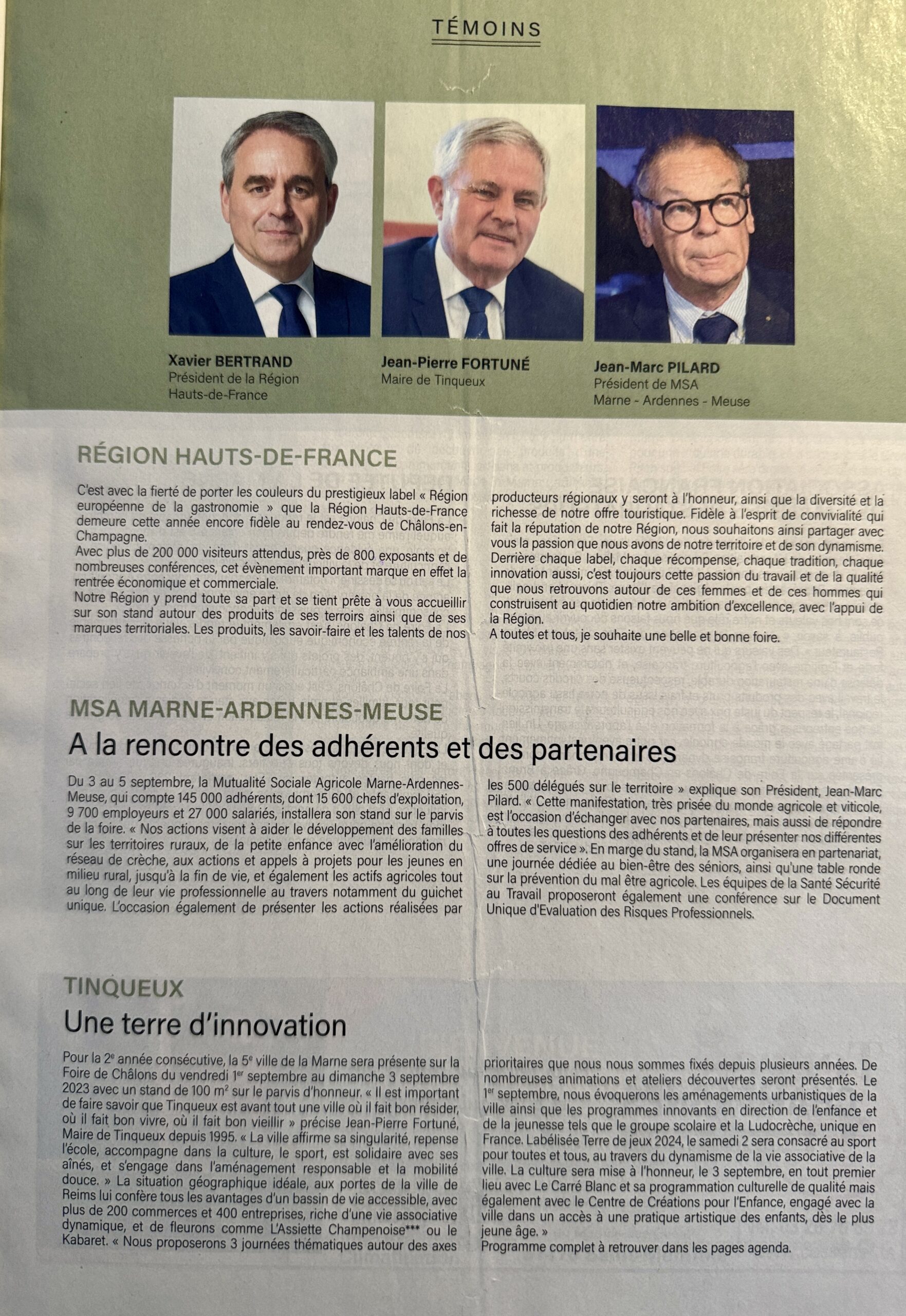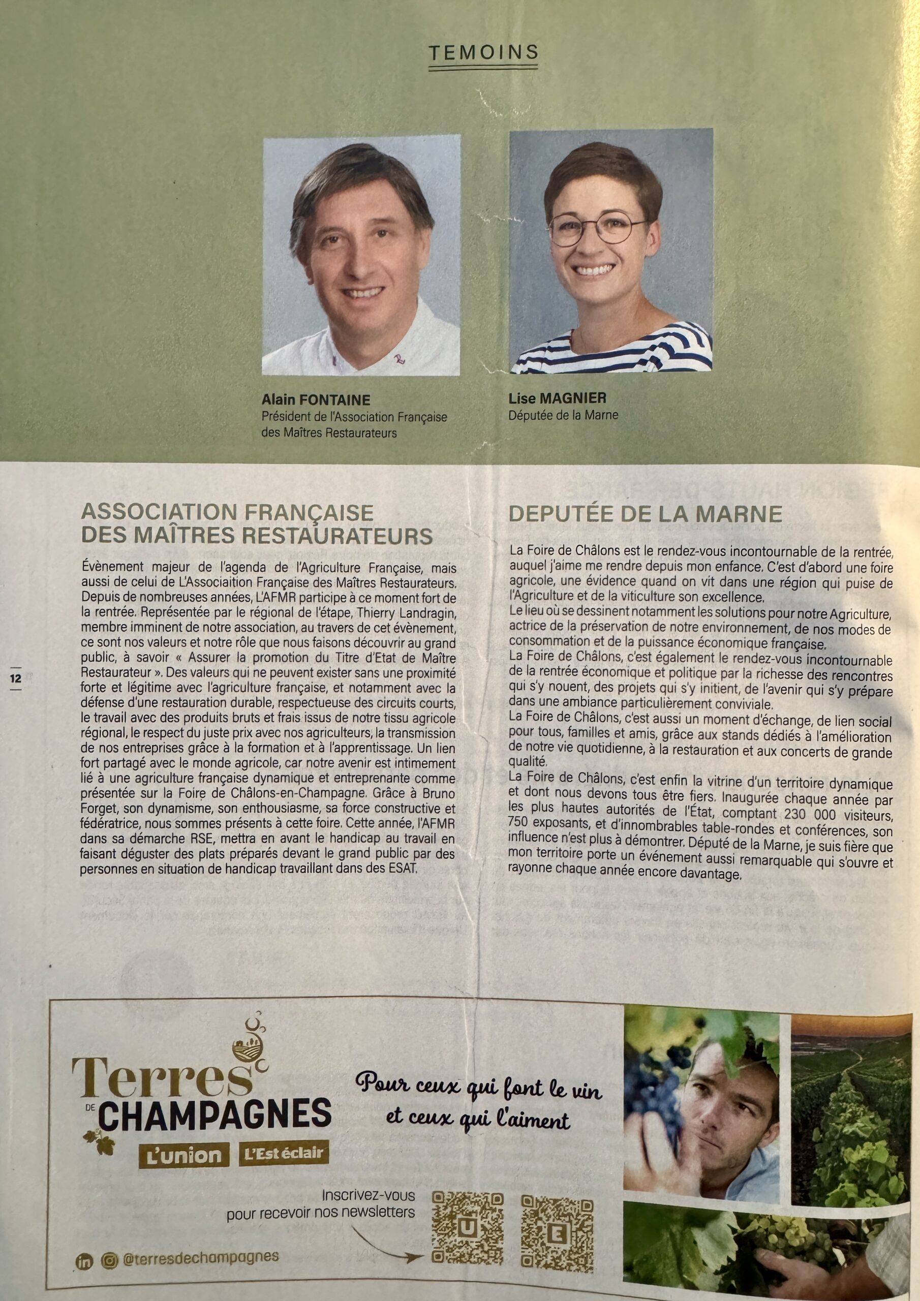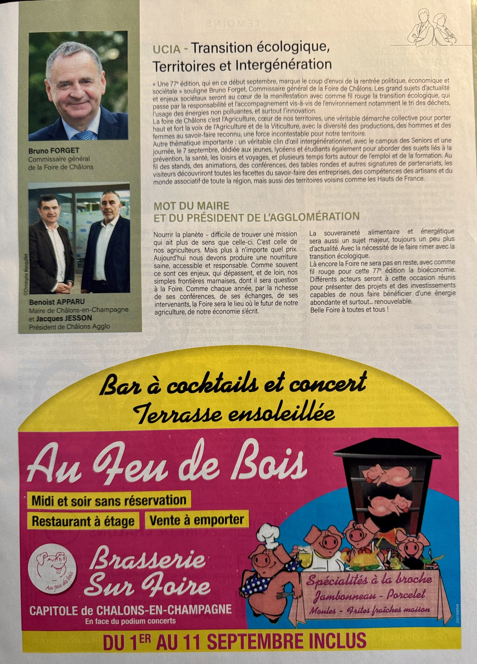 37 interviews (articles) pour le magazine de la Foire de Châlons, 2 ème foire agricole de France, distribué par le Journal L'Union, partenaire de l'évènement du 1er au 11 septembre 2023.
