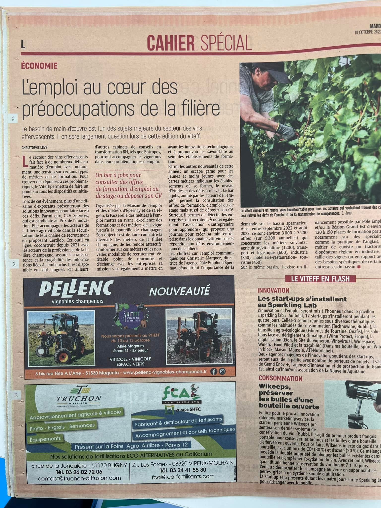 En collaboration avec le pôle Vitalyance (Acolyance Vigne - Cérésia) et GEC Global Experts Conseil, la rédaction d'articles publiés sous forme de publireportage sur des sujets inspirants et d'actualités pour les Vignerons de Champagne (Climat, Organisation de l'exploitation, Bien-être du Vigneron, Eco-Packaging, Ventes, Perspectives, Transmission..)